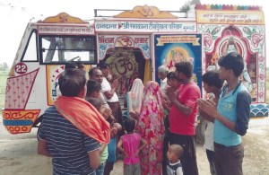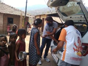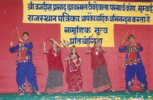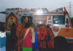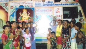 With an intention of diverting the minds of the Adivasis (Adivasi is the word coined to represent indigenous people of India) on a spiritual side, we had been organizing Durga Puja at the Khemi Sati Mandir in Jhunjhunu, Rajasthan from 2003 to 2016. The puja ceremony was followed by various entertainment and cultural activities which last for around 8 days and in these 8 days, we fed about 2000 to 3000 people the Prasadam food. We have organized movies specially curtained on a ‘Rath’, a moving van and also built and donated 5 raths to the Adivasis. We also ran health camps and supplied necessary medicines to them. The school children always look forward to this function as the last 5 days were of interschool competition where children participated in an elocution competition and dandiya, the Indian folk dance.